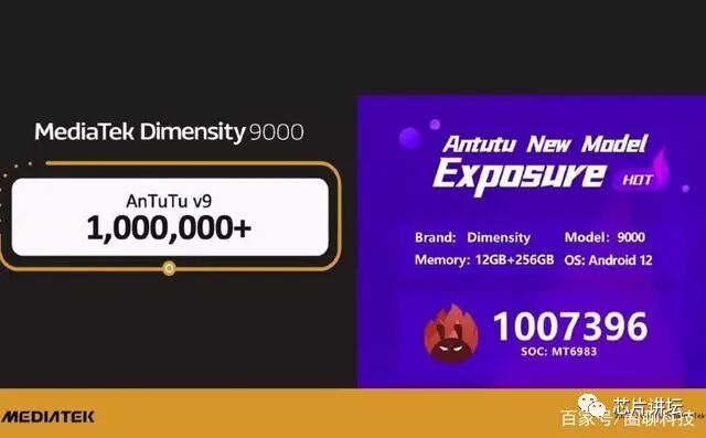目前“天玑9000”处理器在安兔兔上的跑分已经曝光了,高达百万的得分,直接刷新了所有记录,要比改良升级的骁龙888plus芯片高出了15万分,这样而直接拉开了和高通的差距,意味着在3nm工艺还没诞生之前,之后的一段时间安卓的高端旗舰机,将全面搭载这款芯片上市!