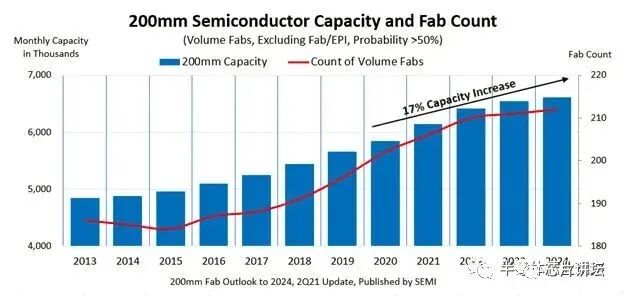 但是从服务于全球电子设计和制造供应链的行业协会 Semi 今年早些时候发布的题为“ 2024 年 200 毫米晶圆厂展望”的报告中看到,我发现我错了。那份报告说: