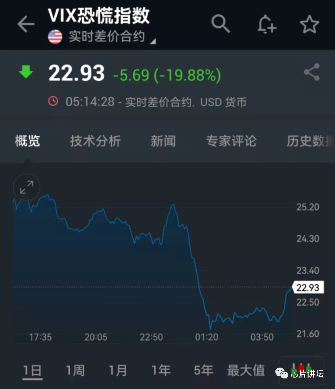 衡量美股波动率的VIX恐慌指数大幅回落。据英为财情数据,截至当地时间11月29日收盘,恐慌指数跌19.88%。