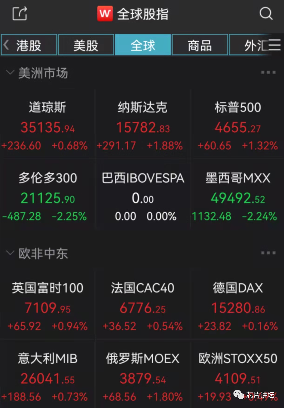 值得注意的是,美股市场上,芯片股成为助力美股反弹的重要力量。