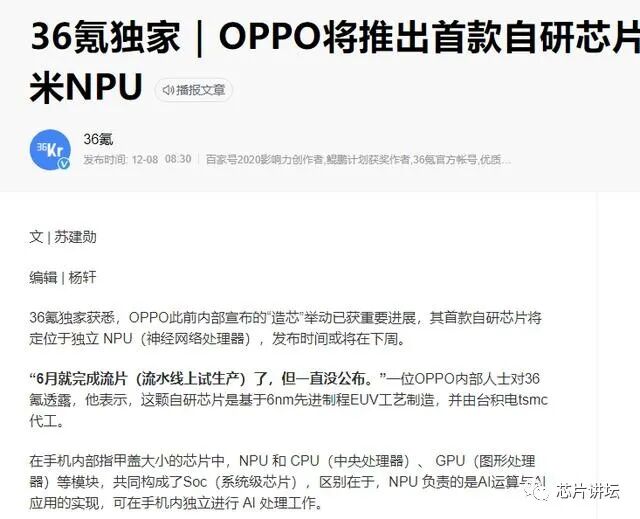 有趣的是,在OPPO官宣芯片后,知名媒体@36氪 也在第一时间向外界透露了OPPO自研芯片的部分细节,其中包括2000人的造芯团队、联发科6nm制程工艺、单次流片实验费用约为1亿人民币等,可见OPPO造芯之旅实属不易。
