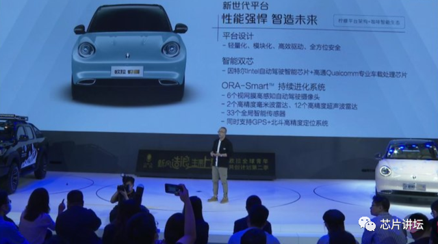 另一个佐证是,去年11月底,欧拉好猫正式上市时,官方对外发布的新闻资料中,明确写明欧拉好猫的最大卖点是长城汽车旗下首款柠檬平台架构+咖啡智能生态的纯电动车,智能搭载系统搭载的是英特尔芯片,当时并没有提及和宣传过好猫的车机搭载的是高通8155芯片。
