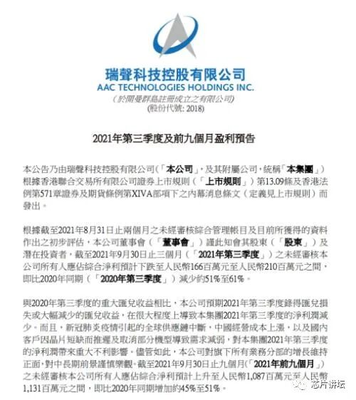 暴跌的直接推手,是瑞声科技最新发布的盈利预测公告。