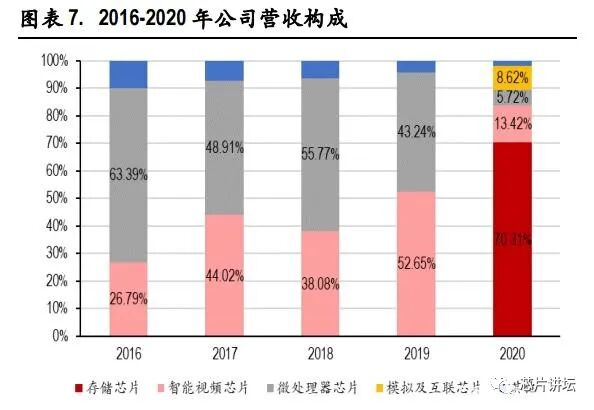 北京君正自成立以来,在嵌入式 CPU、视频编解码、影像信号处理、神经网络处理器、AI 算法等领域持续投入,形成微处理器芯片和智能视频芯片两条产品线,2020 年完成对北京矽成的收购进入存储芯片、模拟芯片和互联芯片领域。