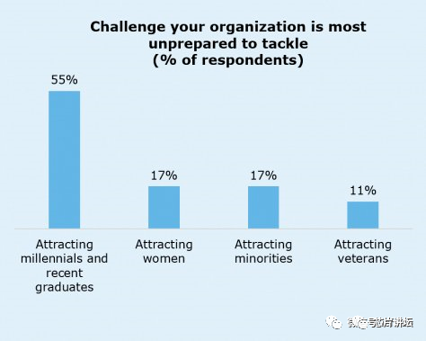 图:根据 2017 年Deloitte-SEMI 劳动力发展调查,半导体行业最大的招聘挑战是吸引千禧一代和应届毕业生