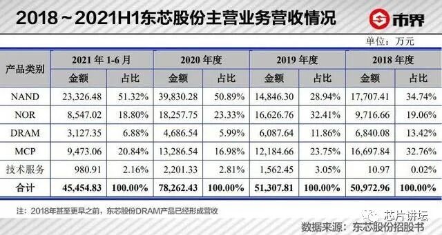 相比之下,业界龙头兆易创新在2020年开始销售DRAM产品,2021年6月才推出首款自有品牌DRAM。而根据东芯股份招股书,在2018年甚至更早之前,其DRAM产品已经形成营收。
