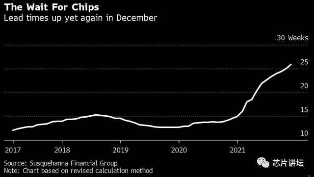 芯片交货时间持续增加 图源:彭博社