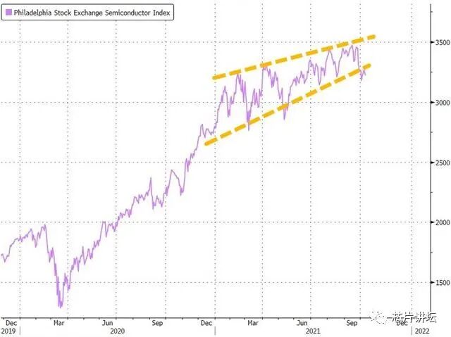 根据金融机构提供的数据,分析师预计三星电子、美光科技(MU.US)和英特尔(INTC,US)的未来2个月收益预期可能出现大幅下滑。覆盖美股半导体板块的iShares Semiconductor ETF (SOXX.US)自8月以来就开始出现较大幅度调整,经过短时间反弹后呈现箱体震荡趋势。