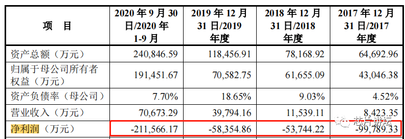 从盈利方面来说,翱捷科技的表现并不理想。在2017年、2018年、2019年、2020年前三季度中,公司的净利润分别为-21.1亿元;-5.8亿元;-5.3亿元;-9.9亿元;不足四年间,亏损金额高达42.1亿元。