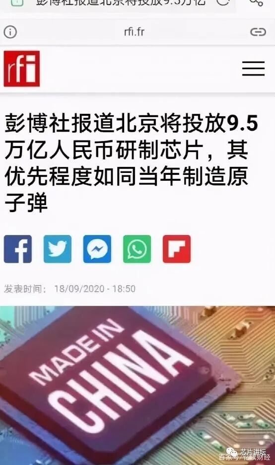 2020年9月,美国媒体报道称,未来中国将会投入9.5万亿元用于研制芯片,其优先程度如同当年造原子弹!