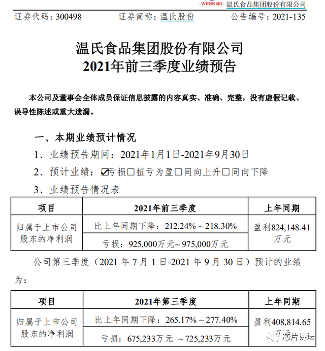 温氏股份公告,预计前三季度亏损92.5亿-97.5亿元,其中第三季度预亏67.5亿-72.5亿元,上年同期盈利40.88亿元。养猪行业第三季度陷入全面亏损。