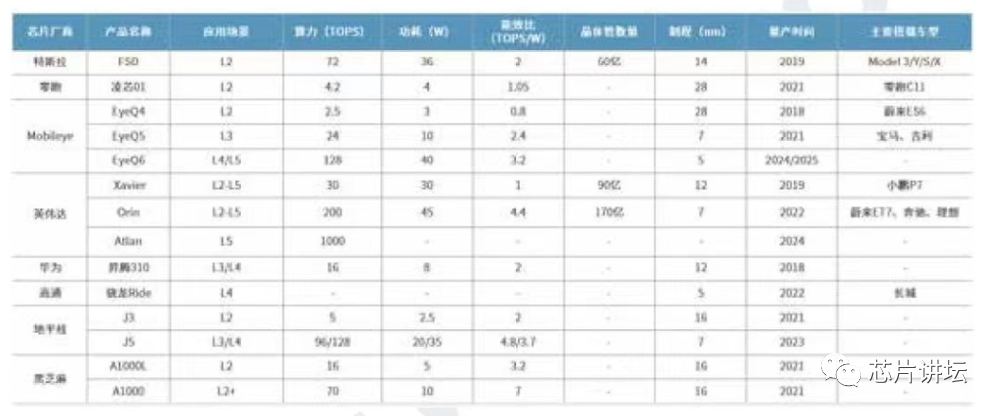 图7 主流自动驾驶芯片供应商产品