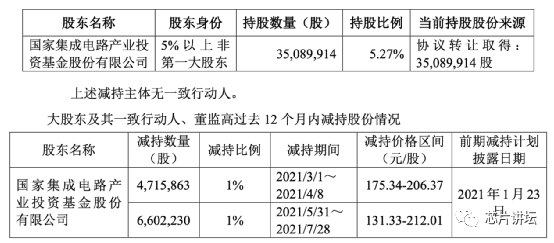今年7月份,兆易创新也曾发公告称,在减持计划实施期间内,大基金通过集中竞价交易方式累计减持公司股份1131.81万股,占公司总股本的2%。截至该公告披露日,大基金持有公司股份3508.99万股,占公司总股本的5.28%。