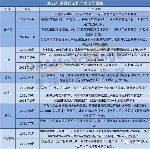 三星、联电、英特尔、格芯也都在2021年宣布了扩产计划。