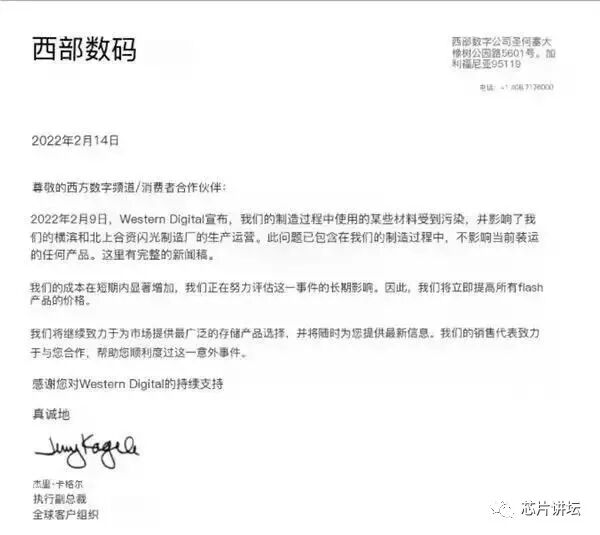 2月14日,西部数据向客户发布通知,宣布立即提高所有Flash产品价格。西部数据在通知函中表示:“我们的成本在短期内显著增加,我们正在努力评估这一事件的长期影响。因此,我们将立即提高所有Flash产品的价格。”