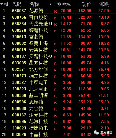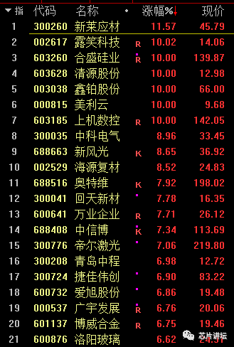 芯片、半导体等科技题材大爆发,千亿巨头北方华创涨停,江丰电子、芯源微20%涨停,江化微等多只股涨停。