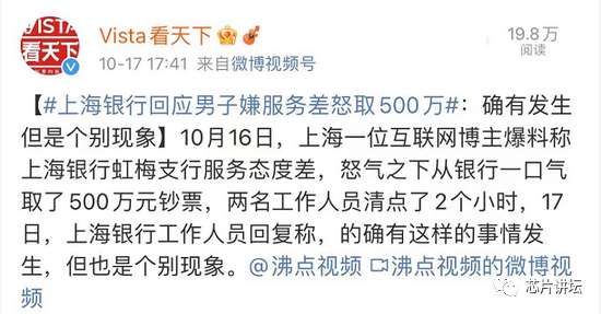10、怒怼上海银行大V回应当场取走500万