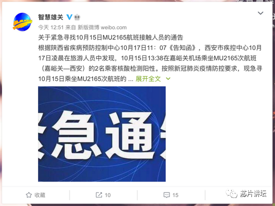 甘肃嘉峪关市紧急寻找10月15日MU2165航班接触人员