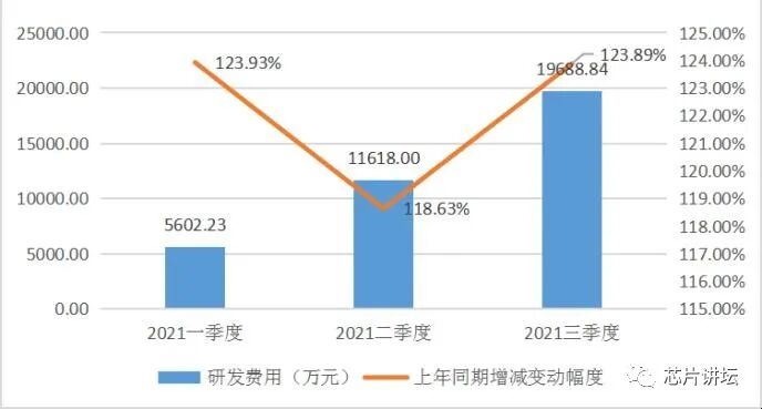 另外,根据公司公告显示,2021前三季度公司的电源管理芯片业务营收为1.77亿元、同比增长1240.97%,使得电源管理产品营收占比由一季度的11.14%提升至19.8%。这是得益于大电流低压差线性稳压电源、高速栅级驱动器、超低噪声低压差线性稳压电源及电源监控等产品实现量产。