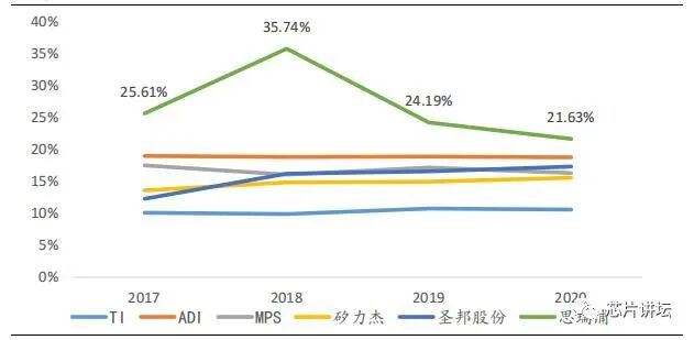 同时,根据思瑞浦在2021年11月公开投资者交流公告所陈述的战略,公司将围绕线性电源、通用DCDC开关电源、PMIC、数字多相电源及电池管理系统等方向继续进行产品布局。使得整体产品结构均衡化、合理化,具备更强的增长动能。2021年也标志着思瑞浦正式由信号链时代开始向双轮驱动时代发展。