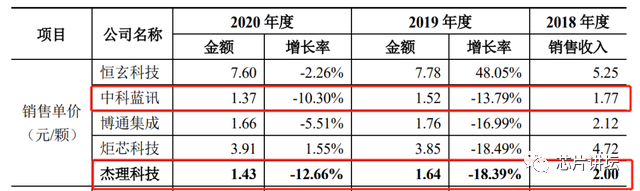 同年,杰理科技与另一家耳机芯片公司中科蓝讯“狭路相逢”,后者已在今年1月21日科创板过会并提交注册。在其他厂商的蓝牙芯片大多还处于10元左右的情况下,两者连续三年降价10%,一道将芯片价格售价降至1.5元区间,卷起价格战血海。最终,两家蓝牙耳机芯片的出货量合计近30亿颗,出货量近乎相当。