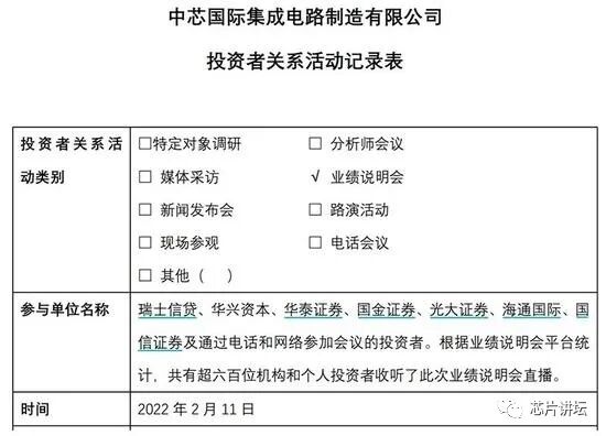 中芯国际在2月22日披露的投资者调研纪要显示,有超过600位机构和个人投资者参与了2月11日举行的2021年第四季度业绩说明会直播。公司的介绍也透露出诸多有意义的信息。