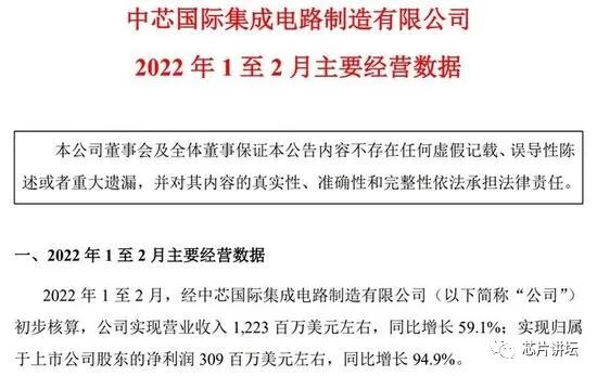 8日晚“芯片一哥”中芯国际也破天荒披露前两个月经营数据——盈利增长势头非常迅猛!