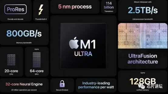 苹果在3月9日凌晨举办了今年首场发布会,为用户带来了史上最强的自研PC芯片:M1 Ultra。笔者了解到,M1 Ultra采用多晶粒架构设计,由两颗M1 Max芯片组成,拥有20核CPU、64核GPU。
