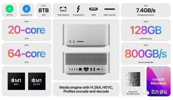 软硬件的深度整合一直是苹果的优势,macOS Monterey专为Apple芯片设计,能够充分利用M1 Ultra在中央处理器、图形处理器、内存带宽上的巨大升级。