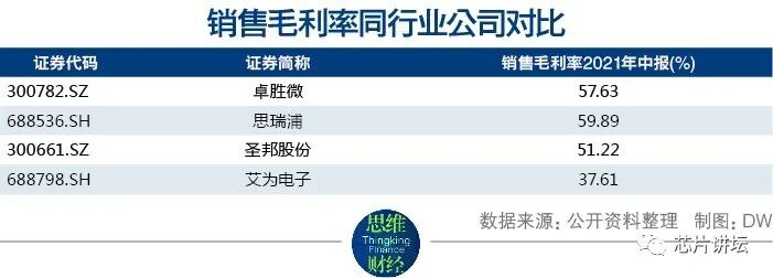 具体从财报上来看,2020年公司毛利率为32.6%,与同行业公司对比并不高;2021年上半年公司毛利率虽然恢复至37.6%,但同行业三家可比公司毛利率均超过51%,相比之下公司产品毛利率水平仍较低。对此,艾为电子表示公司为平台型企业,产品种类较多,所以公司更关注综合毛利率。