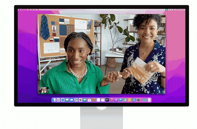 随着 iPad Air(第五代)的发布,人物居中已经成为了 iPad 的全系标配,而使用了 A13 芯片的 Studio Display,则把这一功能带到了桌面端。在视频会议时,人物居中可以保证参会对象一直在画面中间,如果有人加入或者离开画面,镜头视角也会相应地扩大或者拉近。