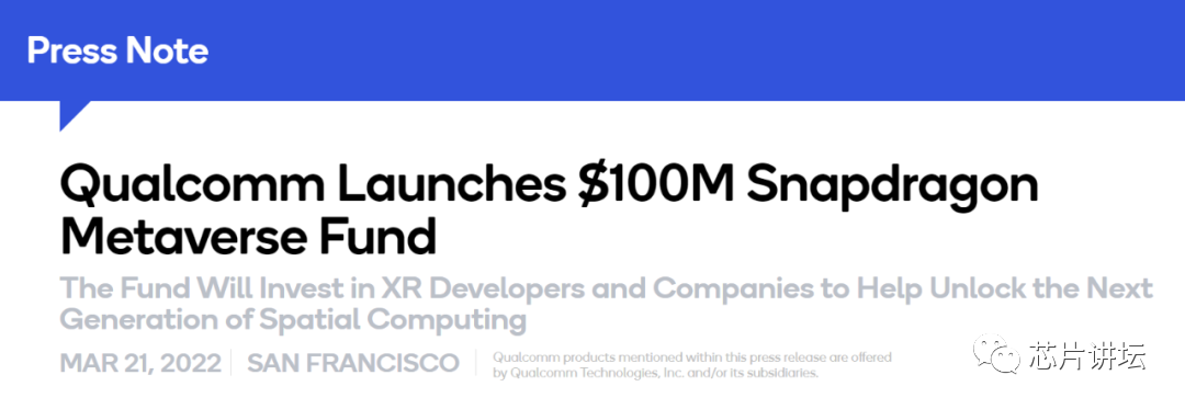 当地时间3月21日,高通宣布设立总金额高达1亿美元的骁龙元宇宙基金,用于投资打造独特沉浸式XR体验以及相关核心AR和AI技术的开发者和企业。该基金将在今年6月正式开放,接受相关申请。