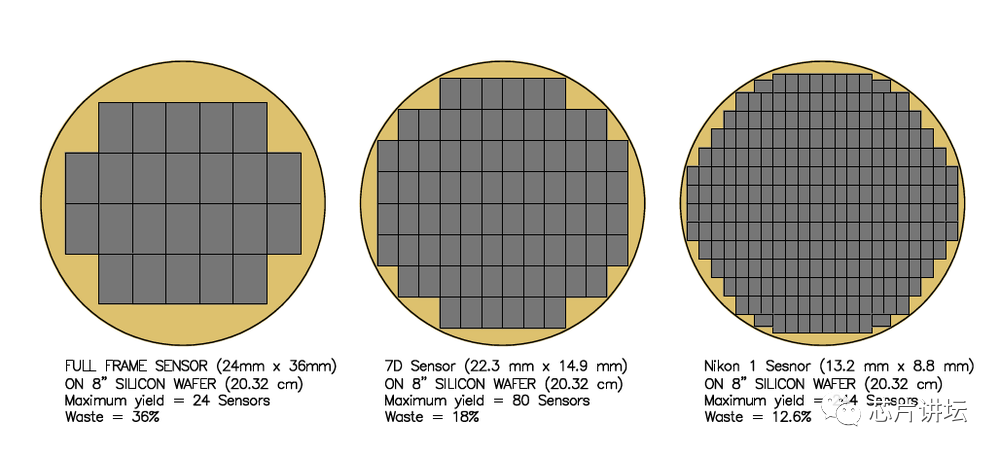 在切割的时候,就会尴尬地发现,这方形的芯片做得越大,就越容易浪费造成侧边的浪费。