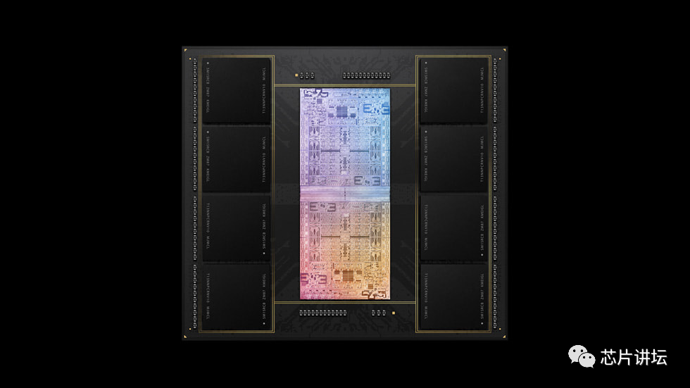 在苹果官方的宣传中,这两颗芯片之间的绝大部分单元,都可以直接通过 Ultra Fusion 交换信息和数据,从而实现不同 CPU,GPU 计算单元之间的充分利用,极大的降低数据延迟。