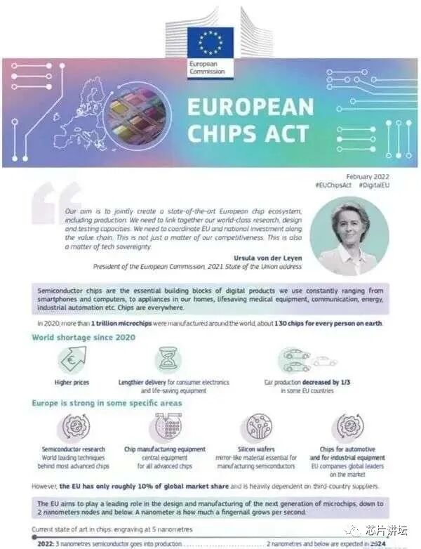 除了企业开始向欧美转移以外,2020年开始,欧美各国政府也开始有意促进产业转移。例如美国众议院通过的《2022年美国竞争法案》,强调了对芯片制造产业的支持和补贴;欧盟委员会公布《芯片法案》,将投入超过430亿欧元公共和私有资金,用于支持芯片生产、试点项目和初创企业。