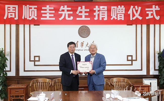 2018年5月,清华大学校长邱勇为周顺圭先生颁发了捐赠证书。