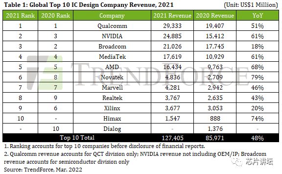 海思(HiSilicon)和紫光(Unigroup)都曾进入过全球十大IC设计企业榜单。