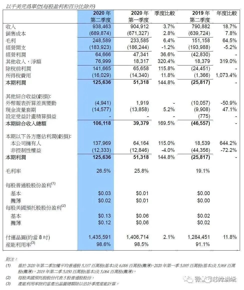 产能方面,二季度财报显示,中芯国际月产能由今年一季度的47.6万片,增加至今年二季度的48.0万片。公司称,主要由于 2020 年第二季控股的上海 300mm 晶圆厂产能增加及生产计划调整的净影响所致。