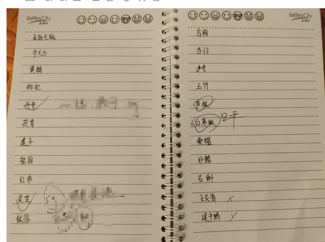他拿出了个家里有的药的小本子,有好多页,家里堆了各种药材和成品方剂。