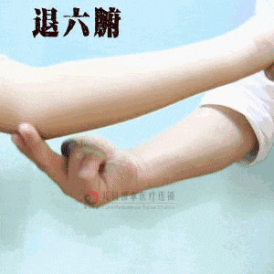 穴位:六腑位置:前臂尺侧,自肘关节至腕横纹呈一直线。操作:用拇指面或食、中二指面自肘推向腕,见图。 约推100~500次。主治:高热,烦躁,咽喉肿痛,大便干燥,鹅口疮,腮腺炎等。