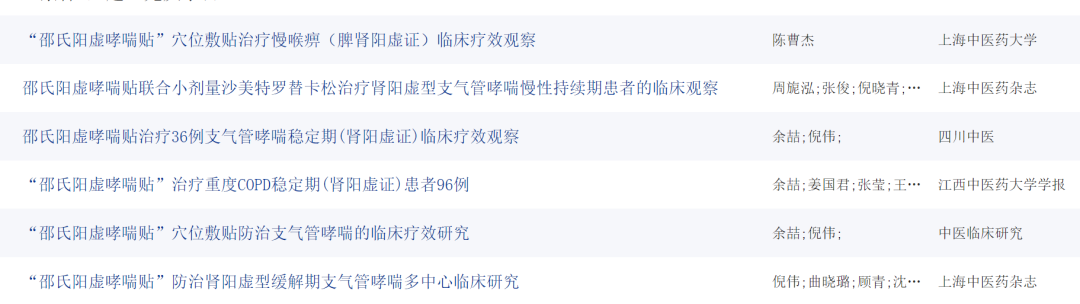 上海龙华医院呼吸病名医倪伟教授是我博导师兄,倪老师及其学生多次进行了临床研究,表明“邵氏阳虚哮喘贴”对于支气管哮喘、慢阻肺、慢性咽炎都有显著疗效,可有效改善症状,以及调节免疫指标异常。