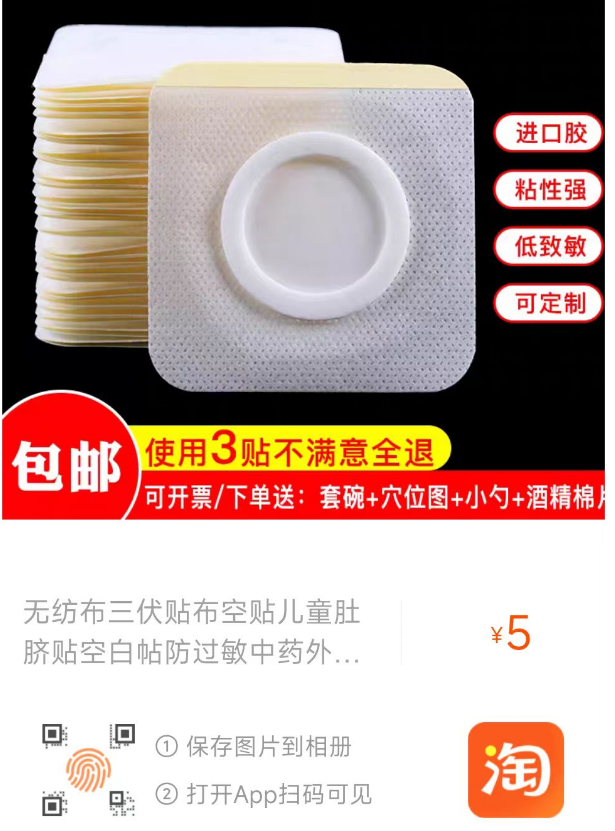 市面上确实有卖很多提前做好的三伏贴,但是我之前买了一个卖的多的成品三伏贴回来贴着,是毫无感觉,穴位丁点刺激发红都没有,就完全没啥效果。我也确实不知道哪个成品厂家三伏贴有效果,所以就不推荐了。
