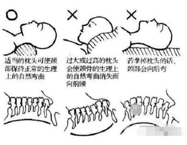 枕头高度必须让颈椎得到适当承托,如仰卧时额头能与下巴形成水平状态,而侧卧时颈椎仍能维持挺直,约与两旁肩膊形成九十度直角为宜。