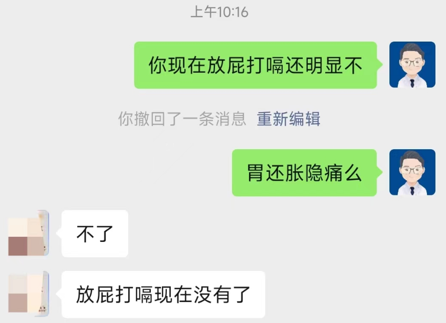 今日回访,脾胃消化恢复正常。