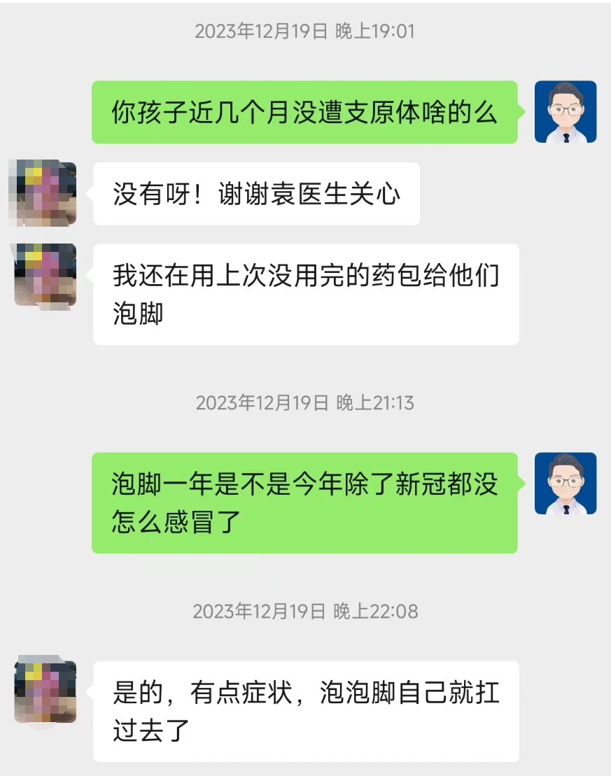 孩子23年除了年初新冠严重感冒了一两次,后面身体一直保持较好,其母亲也掌握了泡脚诀窍,在有问题的初期或者病毒肆虐时就提前泡脚预防。