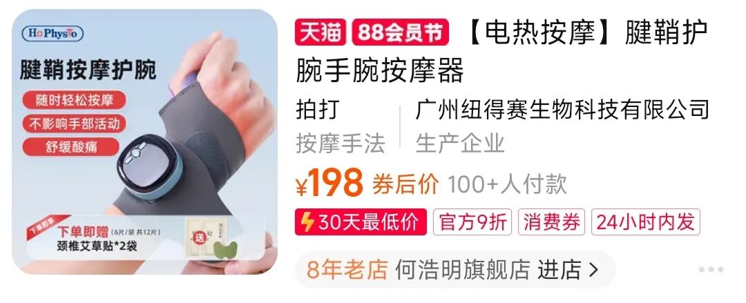 唯一的不足就是价格有点高,何浩明腱鞘护腕按摩器,旗舰店券后都要卖到 198 !