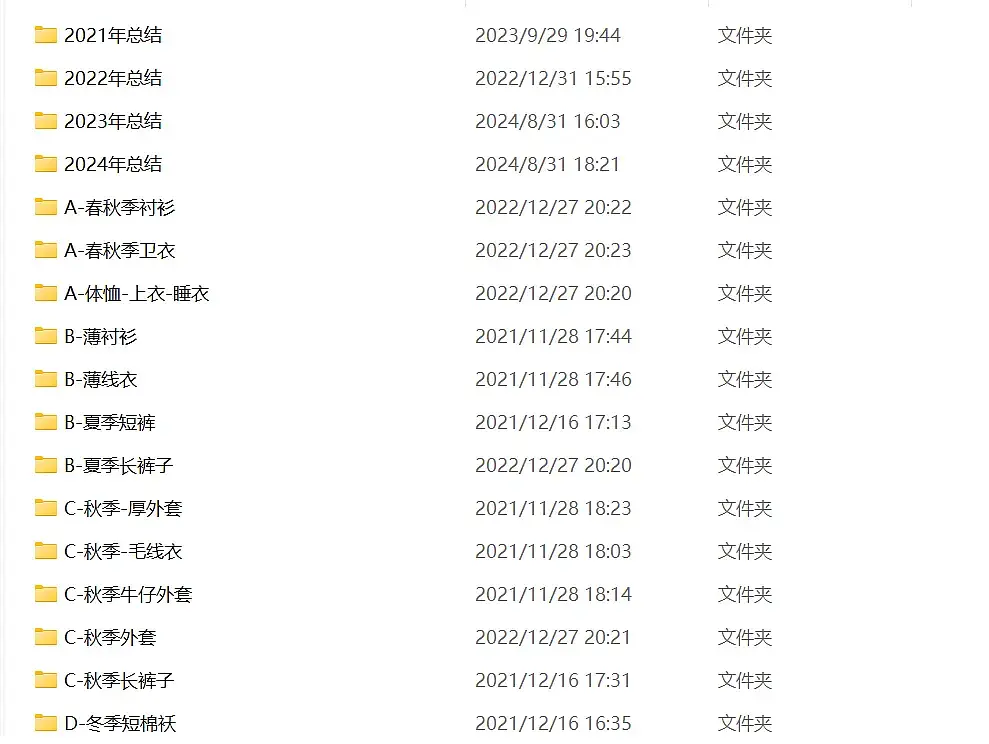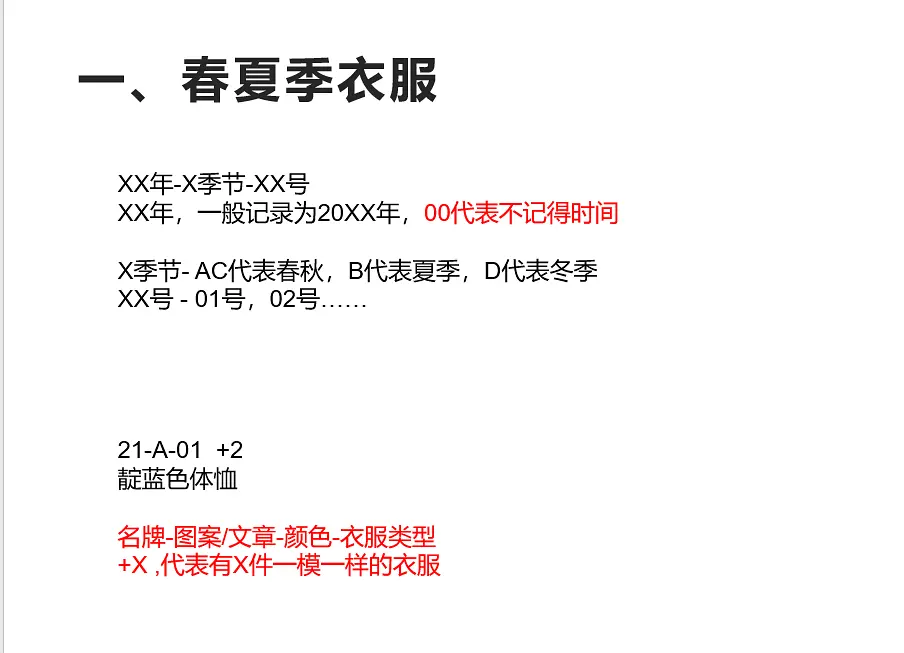 最后,我也会对衣服进行编号。一般是按照:X年X季节第X件衣服,作为唯一标识符编号。比如24-A-01,代表24年我买的春秋季节的第一件衣服。