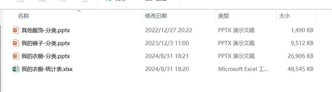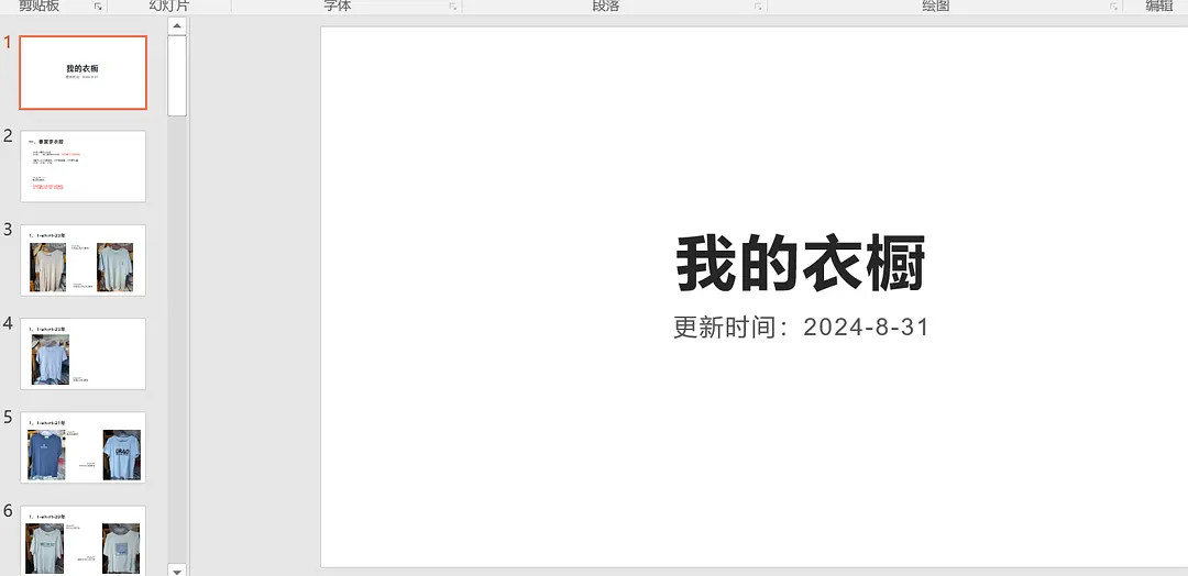 然后PPT的话,主要是为了直观展示我的衣服外观,如果之后买新衣服,方便做参考,是否适配大部分衣服等。