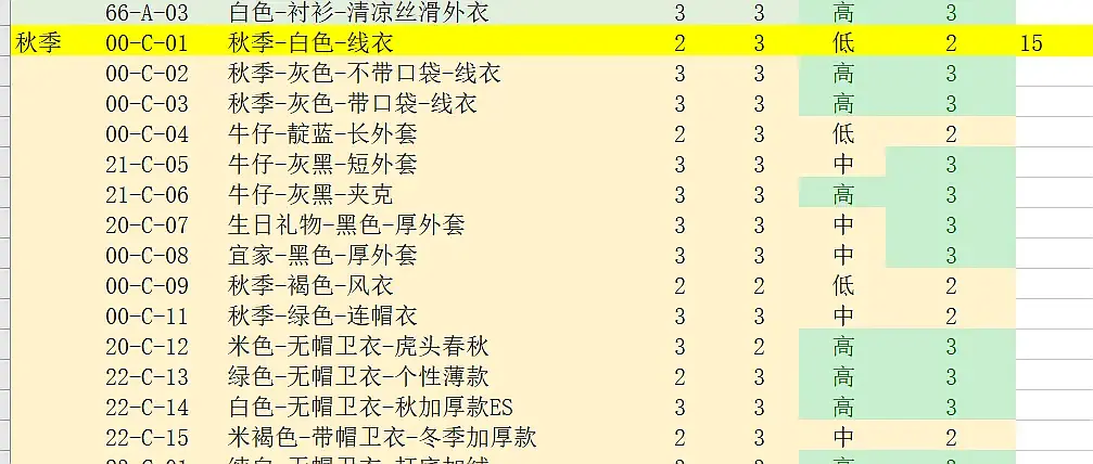 excel主要是为了统计有多少衣服,每件衣服的舒适度,适用度(也就是旧不旧,磨损大不大),穿这件衣服的频率,然后打个分。
