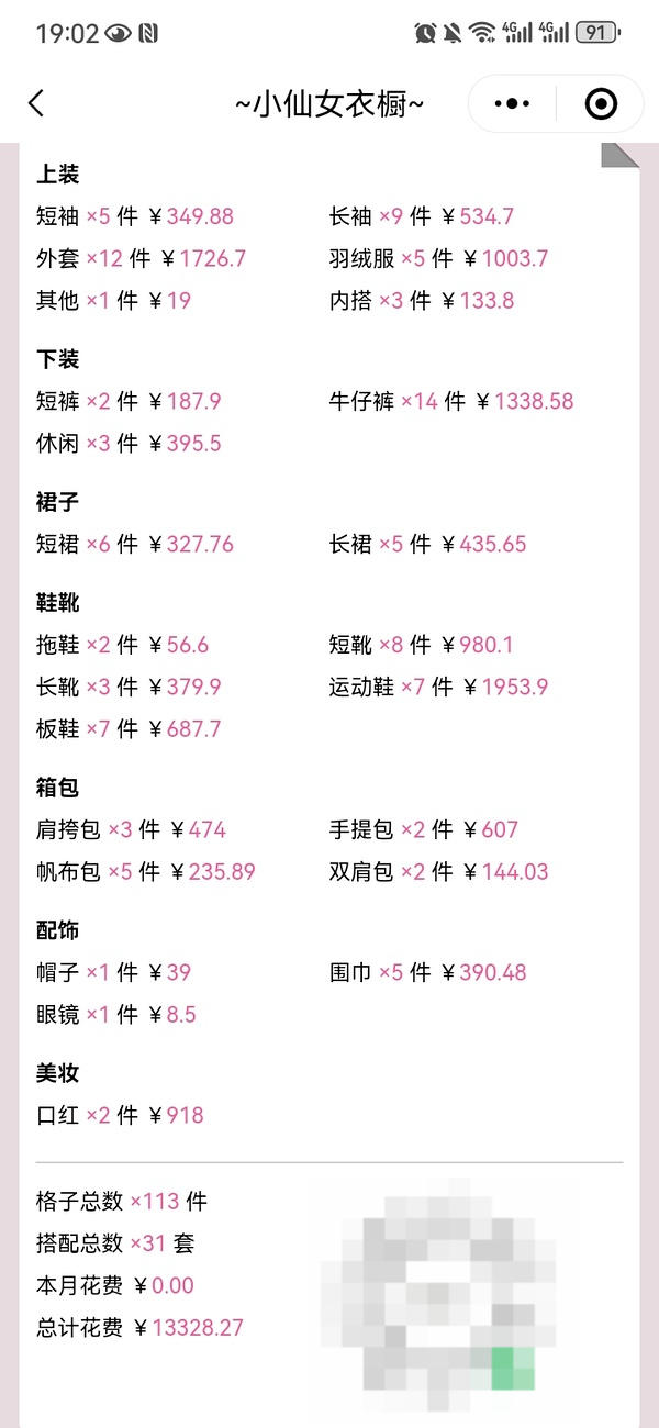 然后每次整理统计,会给新衣服拍照片放到PPT里面,评分为1的衣服,有时候会选择丢掉。
